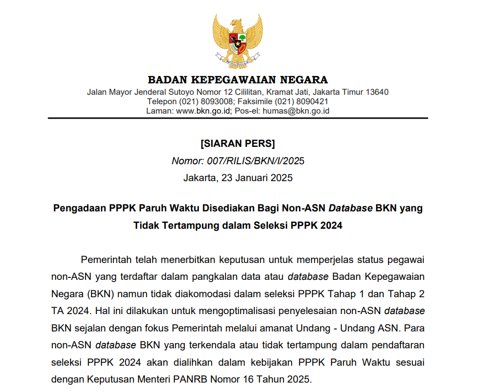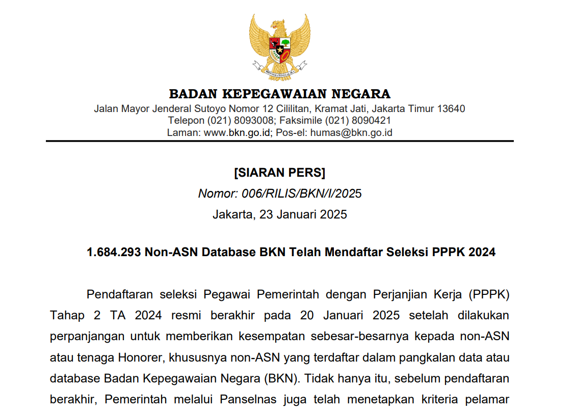 Kriteria Pelamar Tambahan Seleksi PPPK Bagi Pegawai Non-ASN Database BKN